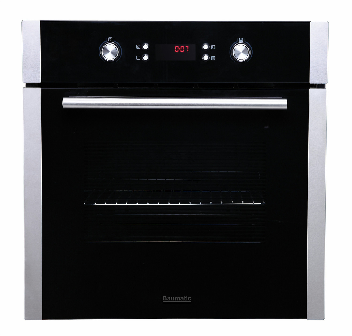 Baumatic B620MC. Ofengröße: Medium, Ofentyp: Electric oven, Gesamtes Fassungsvermögen Garraum Ofen: 70 l. Produktfarbe: Schwarz, Kontrolltyp: Knöpfe, Rotation, Kontrollposition: Vorderseite. Energie-Effizienzklasse: A, AC Eingangsspannung: 220-240 V, AC Eingangsfrequenz: 50/60 Hz. Breite: 595 mm, Tiefe: 575 mm, Höhe: 595 mm