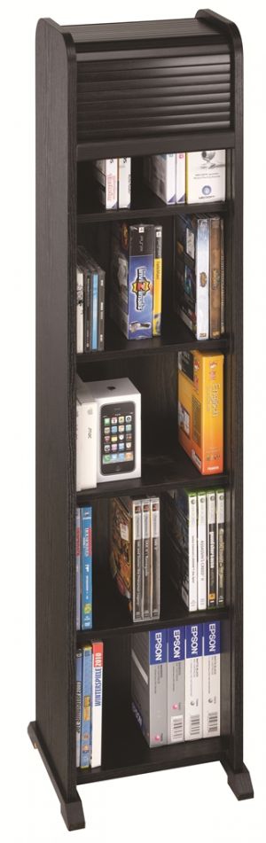 Multimedia-Tower mit Leichtlauf-Rollo für 90 DVDs, schwarz, Displaykarton