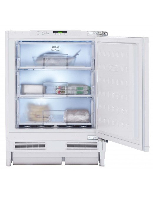 Der intergrierbare Unterbaugefrierschrank BU 1201 bietet 87 Liter Nutzinhalt für eine 60 cm breite Nische. Für eine bessere Übersichtlichkeit und ein schnelles Finden der Lebensmittel sind die Fronten der 3 Gefrierschubladen transparent. Mit den Kontrollanzeigen wird Ihnen der Betrieb, die Supergefrierschaltung und zu hohe Temperaturen angezeigt.