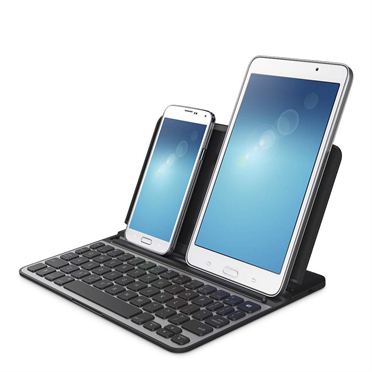 Sie stehen nie wieder vor der Qual der Wahl zwischen Ihrem Tablet und Smartphone. Jetzt können Sie zwei Geräte gleichzeitig über eine drahtlose Verbindung mit einer Bluetooth Smart-Tastatur koppeln. Alle Bluetooth-4.0-fähigen Geräte lassen sich mit der mobilen kabellosen Tastatur koppeln. Wenn Sie also gerade eine E-Mail schreiben und eine SMS-Nachricht auf Ihrem Smartphone eingeht, können Sie umschalten, antworten und sich dann sofort wieder Ihrer E-Mail zuwenden.