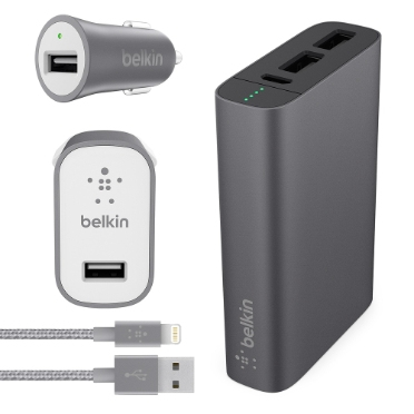 Belkin F5Z0642vfGRYAPL. Produktfarbe: Grau, Aufladekompatibilität: Universal, Kompatibilität: - iPhone 7 Plus - iPhone 7 - iPhone SE - iPhone 6s Plus - iPhone 6s - iPhone 6 Plus - iPhone 6 - iPh. Batteriekapazität: 6600 mAh, Aufladequelle: AC, Zigarettenanzünder. Mitgelieferte Kabel: Lightning