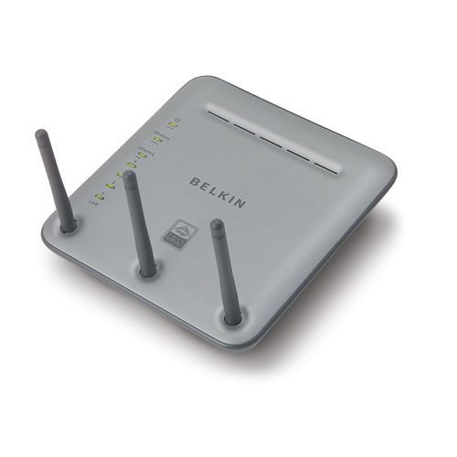 Belkin Wireless Pre-N Router. Switch Protokoll: Ethernet, Data Link Protokolle: Ethernet, Fast Ethernet, IEEE 802.11b, IEEE 802.11a, IEEE 802.11g, IEEE 802.11n (draft), Management-Protokolle: HTTP. Unterstützte Sicherheitsalgorithmen: 128-bit WEP,64-bit WEP,TKIP,WPA. LED-Anzeigen: Leistung. Max. Datenübertragungsrate: 0,108 Gbit/s, Kompatible Betriebssysteme: Apple MacOS 9.x, Apple MacOS X, Microsoft Windows 98SE/2000/ME/XP, Netzwerkfunktionen: TCP/IP, IPX/SPX, AppleTalk, PPTP, UDP/IP, NetBEUI/NetBIOS, VoIP, IPSec, PPPoE