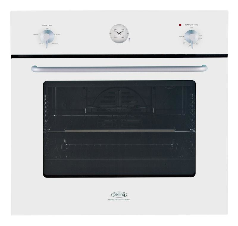 Belling SCBI60FP. Ofengröße: Medium, Ofentyp: Electric oven, Gesamtes Fassungsvermögen Garraum Ofen: 58 l. Produktfarbe: Weiß, Kontrolltyp: Rotation, Kontrollposition: Vorderseite. Timer-Typ: Mechanisch. Energie-Effizienzklasse: A. Breite: 595 mm, Tiefe: 550 mm, Höhe: 585 mm