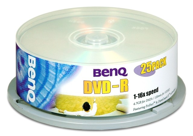 Benq 25xDVD-R 4,7GB. Kapazität ohne Komprimierung: 4,7 GB, Typ: DVD-R, Menge pro Packung: 25 Stück(e)