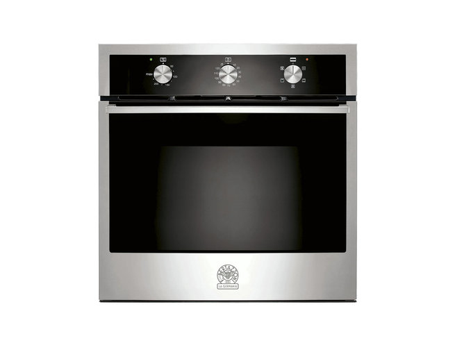Bertazzoni La Germania F650D9X. Ofengröße: Medium, Ofentyp: Electric oven, Gesamtes Fassungsvermögen Garraum Ofen: 65 l. Produktfarbe: Edelstahl, Kontrolltyp: Rotation, Kontrollposition: Vorderseite. Energie-Effizienzklasse: A. Breite: 598 mm, Tiefe: 544 mm, Höhe: 600 mm