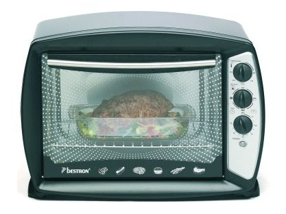 Bestron grill/oven. Ofentyp: Electric oven, Gesamtes Fassungsvermögen Garraum Ofen: 26 l. Produktfarbe: Schwarz. Timer-Typ: Mechanisch. AC Eingangsspannung: 230 V, AC Eingangsfrequenz: 50 Hz, Leistung: 1600 W. Breite: 515 mm, Tiefe: 315 mm, Höhe: 355 mm