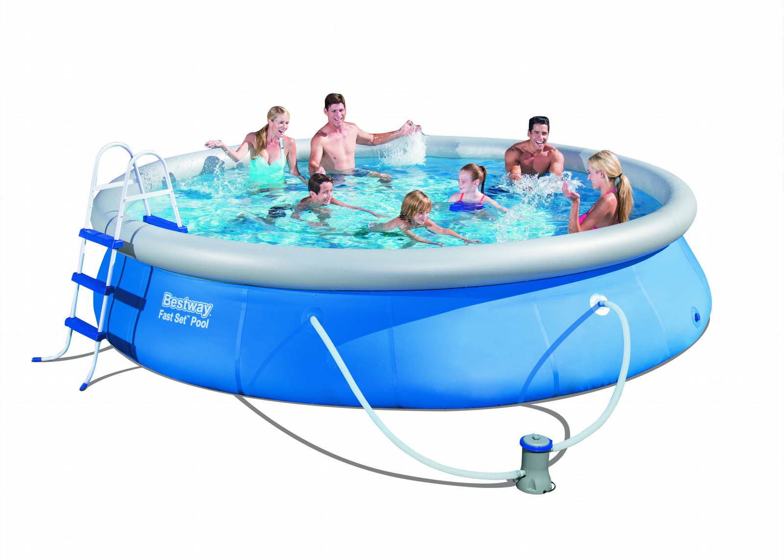 Bestway 57316, Fast Set. Pool-Typ: Inflatable pool, Form: Rund, Fassungsvermögen: 9677 l. Filtrationskapazität: 2006 l/h, Spannung der Pumpe: 220 - 240, Schlauchdurchmesser: 3,2 cm. Verpackungsart: Vollfarben-Box. Innendurchmesser: 3,93 m, Außendurchmesser: 4,57 m, Höhe: 840 mm