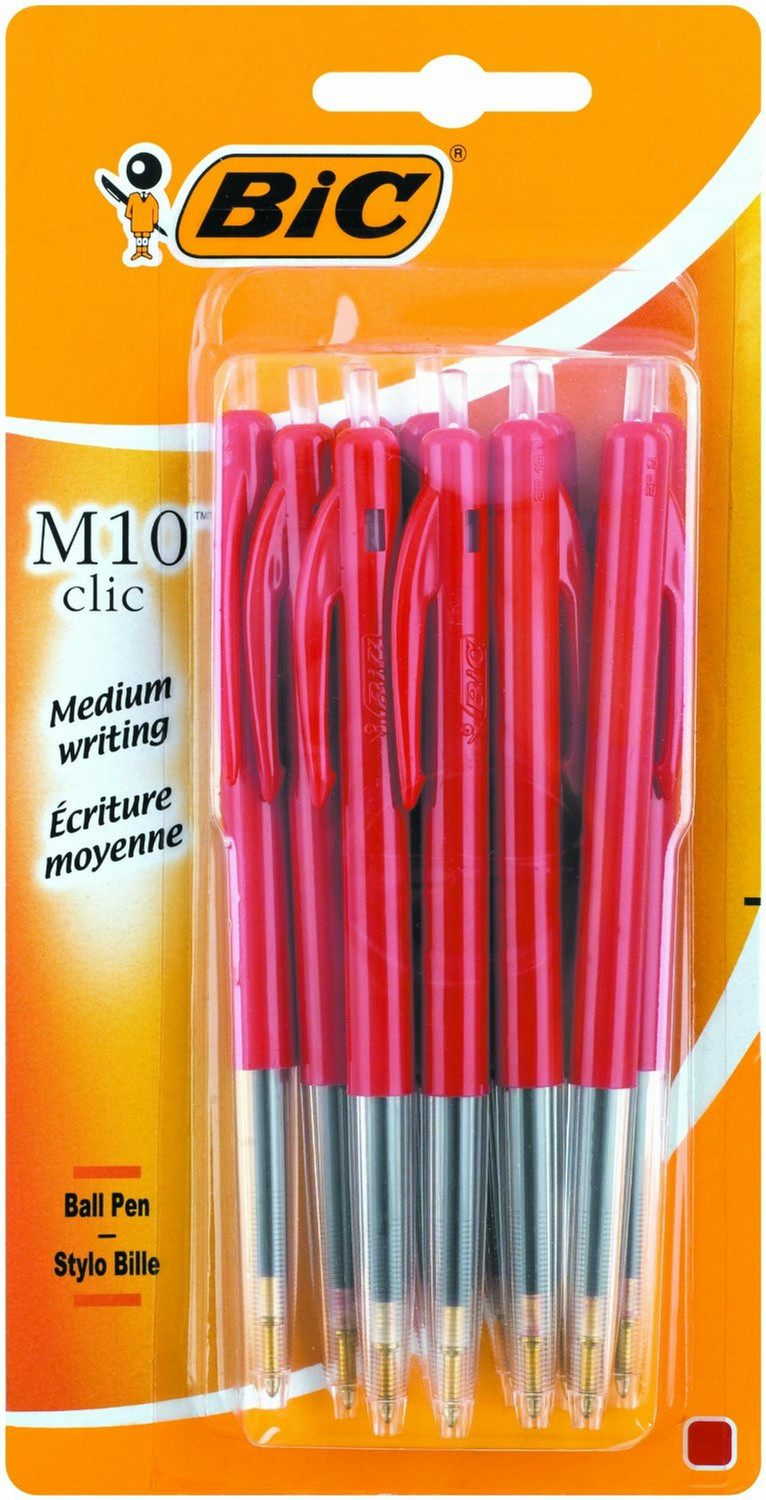 BIC M10 Clic. Typ: Clip-on retractable ballpoint pen, Schreibfarben: Rot, Produktfarbe: Rot, Transparent. Menge pro Packung: 10 Stück(e)