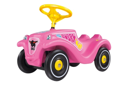 Damit für das kleine Reisegepäck genug Platz bleibt, lassen sich an den beiden Anhängerkupplungen vorne und hinten leicht die passenden Anhänger von BIG anbringen. Ein griffiges Lenkrad, vier fahrstabile Räder und eine Kniemulde für größere Kinder ergänzen die spielstarke Ausstattung. Und dass auch bei schnellen Fahrten das BIG-Bobby-Car-Classic-Girlie nicht kippt verhindert der tiefliegende Schwerpunkt des Fahrzeuges.