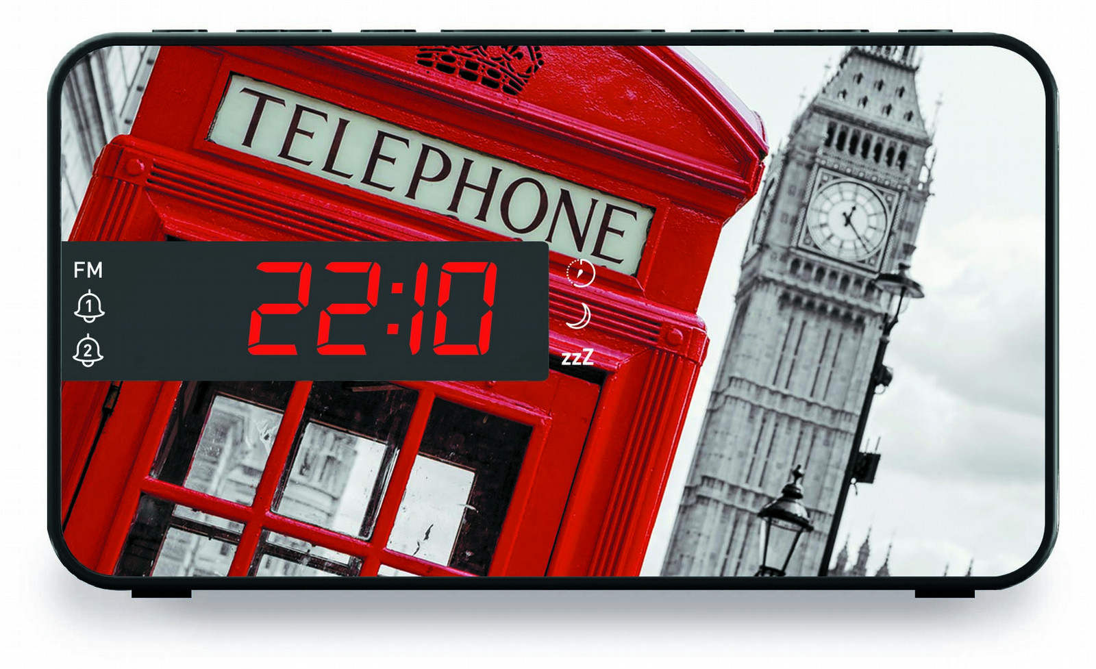 Bigben Interactive RR15TB2. Radiotyp: Uhr, Unterstützte Bänder: FM. Display-Typ: LED. Breite: 143 mm, Tiefe: 80 mm, Höhe: 80 mm. Kompatible Batteriegrößen: AAA. Energiequelle: AC, Batterie/Akku