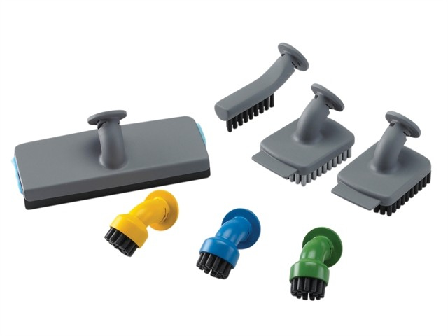 3 kleine Bürsten, 2 große Bürsten, Fensterabzieher, Fugenbürste