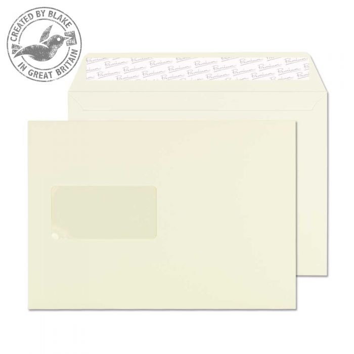 Blake 71708, Premium. Umschlagsformat (ISO 269): C5 (162 x 229 mm), Produktfarbe: Weiß, Fensterabmessungen: 45 x 90 mm. Breite: 22,9 cm, Länge: 16,2 cm. Menge je Palette: 35000 Stück(e)