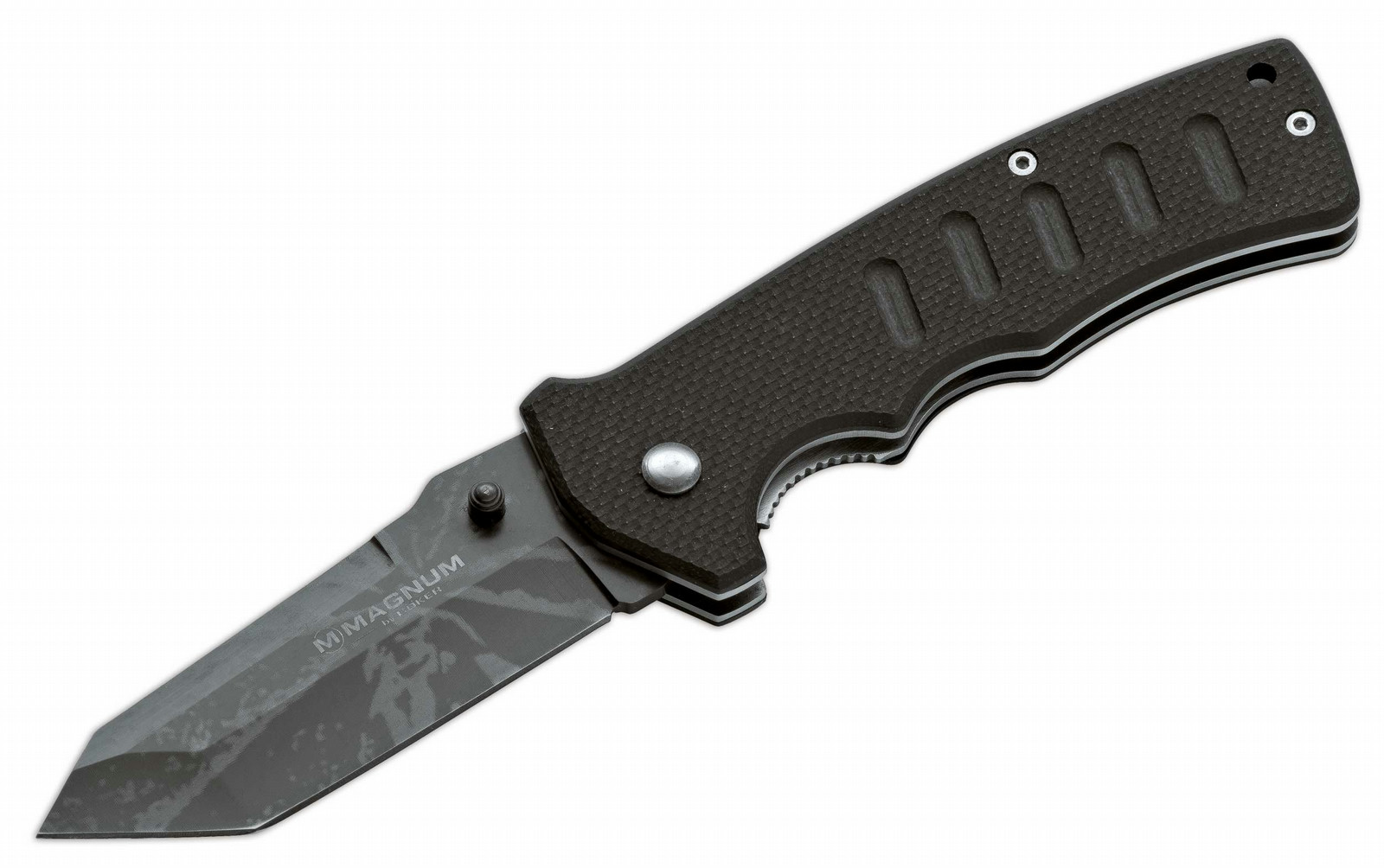 Böker Magnum Detonation II. Gewicht: 164,432 g, Länge: 20 cm. Material Messer: Stahl. Handgrifffarbe: Schwarz, Klingenfarbe: Schwarz