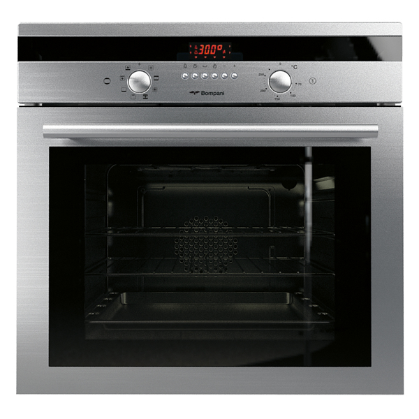 Bompani BO243CA/E. Ofentyp: Electric oven, Gesamtes Fassungsvermögen Garraum Ofen: 54 l, Innenkapazität des 1. Backofens: 54 l. Produktfarbe: Edelstahl, Kontrolltyp: Knöpfe, Rotation, Kontrollposition: Vorne oben. Timer-Typ: Digital. Energie-Effizienzklasse: A. Breite: 596 mm, Tiefe: 524 mm, Höhe: 595 mm