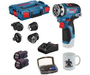 Lieferumfang: Bithalter, 2 Akkus, Gürtelclip, Bit-Set, Schnellladegerät, 4 Aufsätzen, Tasse