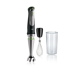 Braun MQ 9005X. Typ: Pürierstab, Produktfarbe: Schwarz, Edelstahl, Kontrolltyp: Knöpfe. Wellenmaterial: Edelstahl. Leistung: 1000 W, AC Eingangsspannung: 230-240 V, AC Eingangsfrequenz: 50/60 Hz