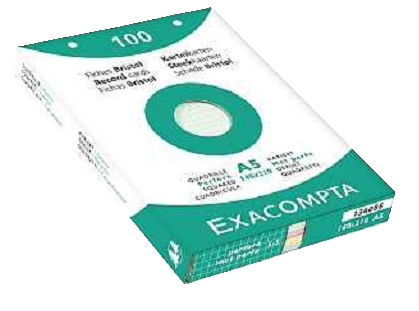 Karteikarten aus 205 g/qm holzfreiem, kalibriertem Karton. Inhalt: 100 Bl./Ktn.