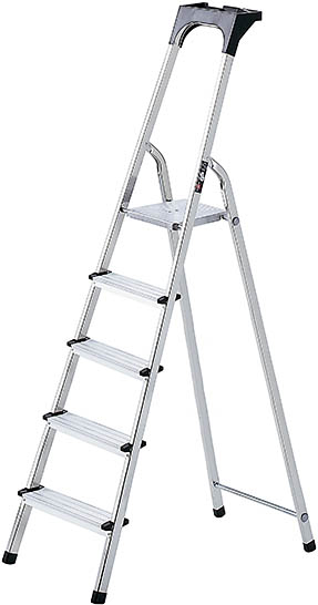 Haushaltsleiter Aluminium mit Arbeitsschale 5 Stufen Plattformhöhe 1m