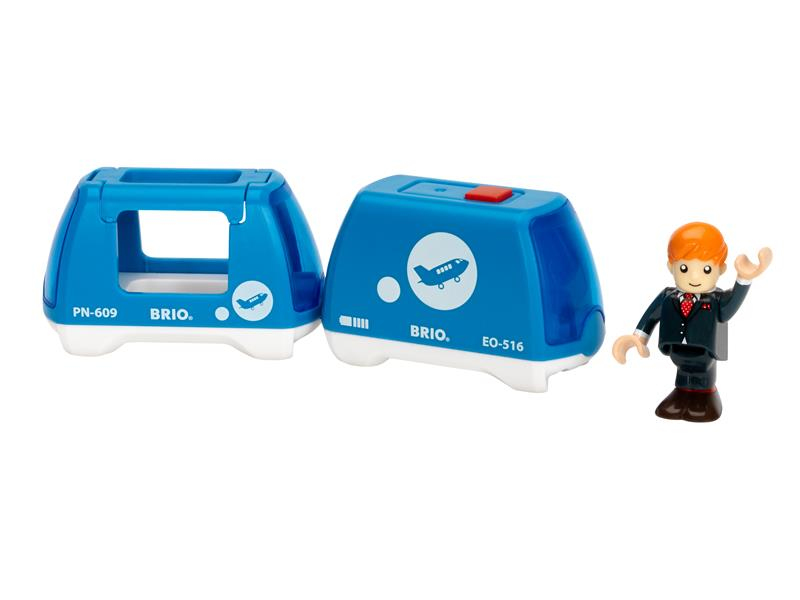 Gleite mit diesem modernen, batteriebetriebenen Monorail-Zug auf allen BRIO Schienen entlang. Enthält eine Lok, einen Pendlerwagen und eine bewegliche Passagierfigur passend für den Zug.