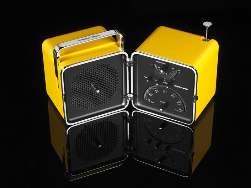 Brionvega Radio Cubo. Radiotyp: Tragbar, Tunertyp: Analog & digital, Unterstützte Bänder: AM, FM. RMS-Leistung: 1,8 W. Lautsprechertyp: 1-Weg. Kopfhörer-Konnektivität: 3,5 mm. Breite: 230 mm, Tiefe: 110 mm, Höhe: 130 mm