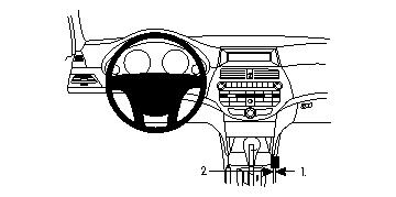1. Die Schutzfolie vom Klebestreifen am ProClip entfernen. Die gedrehte Kante am unteren Ende des ProClip unter der Kante der Konsole festhaken.