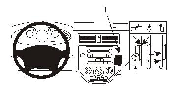 1. Die Schutzfolie vom Klebestreifen am Teil 1 entfernen. Teil 1 in den Spalt zwischen dem Rahmen um der Armaturentafel und dem Armaturenbrett drücken, genau in der selben Position, wie in den Abbildungen gezeigt wird