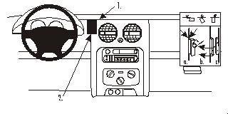 1. Die Schutzfolie vom Klebestreifen am Teil 1 entfernen. Teil 1 in den Spalt zwischen dem Armaturenbrett und dem Rahmen um das Lüftungsgitter drücken. teil 1 nach vorne andrücken, so dass der Klebestreifen frestklebt.