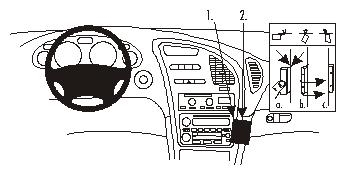 1. Einen Schraubenzieher fest durch die Löcher auf Teil 2 drücken, um sie zu öffnen. Die gewinkelte Kante der linke Seite des Teil 2 in den Spalt zwischen dem Autoradio und dem umliegenden Rahmen drücken.