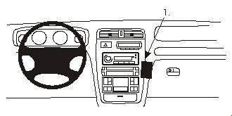 1. Die Schutzfolie vom Klebestreifen am Teil 1 entfernen. Das angewinkelte Ende in den Spalt ziwschen dem Rahmen um der Armaturentafel und dem Instrumentenbrett drücken.