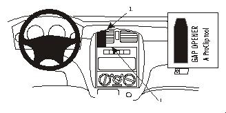 Center mount 1. Geraden Teil bei Pos. 1 in Ritze einführen. 2. Oberen Teil bei Pos. 2 in Ritze drücken.