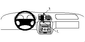 Center mount 1. Gebogenen Teil bei Pos. 1 in Ritze drücken. 2. Anderen Teil mit Klebeband bei Pos. 2 in Ritze drücken.
