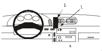 1. Die Schraube bei Pos. x lösen. Das angewinkelte untere Ende des ProClip in den Spalt bei Pos. 1 drücken, uter der Kante der Blende.