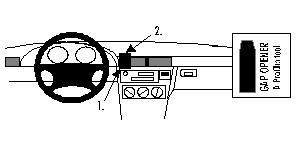 2. Das mit Nut versehene untere Ende des ProClip in den Spalt neben den "Gap Opener" bei Pos. 1 drücken, bis ein Einrasten zu fühlen/hören ist. Den "Gap Opener" herausziehen.