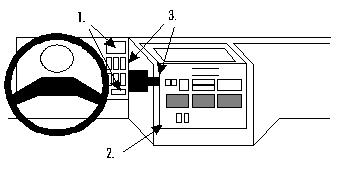 Center mount 1. Abdeckungen bei Pos. 1 entfernen und Schrauben lösen. Mittelkonsole bei Pos. 2 lösen. Halter bei Pos. 3 einführen. Mittelkonsole wieder zurechtrücken und Schrauben festziehen.