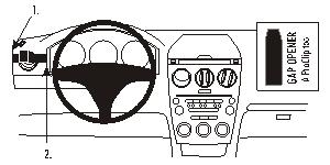 1. Die Schutzfolie von dem Klebestreifen am ProClip entfernen. Die angewinkelte Kante am linken Ende des ProClip in den Spalt in die Seitenwandt des Armaturenbretts drücken.