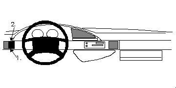 Left mount 1. Unterteil mit Nut bei Pos. 1 in Ritze unter Luftdüse drücken. 2. Oberteil mit Nut bei Pos. 2 in Ritze über Luftdüse drücken.