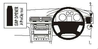 3. Das obere Ende des ProClip in den Spalt neben dem "Gap Opener" drücken. Den "Gap Opener" herausziehen.