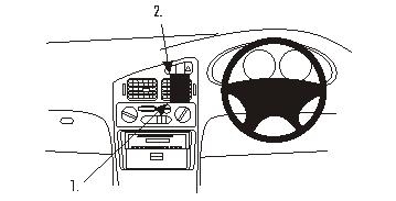 Center mount 1. Die angewinkelte Kante am unteren Ende des ProClip in den Spalt zwischen der Armaturentafel für die Klimaanlage und dem umliegenden Rahmen bei Pos 1 drücken.