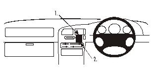 Center mount, ONLY for Coupé 1. Teil mit Nut bei 1 an Kante in Ritze drücken. 2. Unterteil mit Klebeband bei 2 an Kante haken.