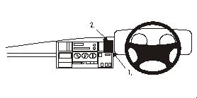 2. Die untere Ecke des nutversehenden Teil des ProClip in den Spalt an Pos. 1 drücken. Das nutversehenden Teil in den Spalt drücken.