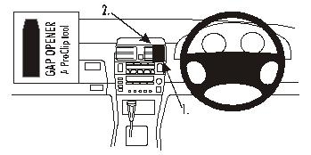 2. Das mit Nut versehene untere Ende des ProClip in den Spalt neben den "Gap Opener" drücken. So lange drücken, bis ein Einrasten zu hören/fühlen ist. Den "Gap Opener" herausziehen.