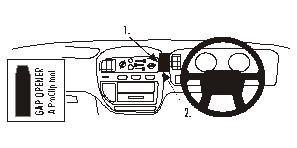 Center mount 1. Den mitgelieferten Ritzenöffner bei Pos. 2. in Ritze drücken. 2. Doppelt gebogenen Teil bei Pos. 1 in Ritze drücken. 3. Halter auf die Seite biegen und bei Pos. 2 in Ritze haken.