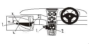 3. Den rechten Teil des ProClip mit dem Klebeband am Konsolenrahmen bei Pos. 2 befestigen. Schrauben an Pos. x festziehen.