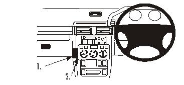 2. Haken Sie den linken Teil des ProClip hinter der unteren Kante der Konsole an Pos. 1.