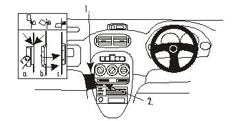 1. Die Schutzfolie vom Klebesteifen am Teil 1 entfernen. Teil 1 in den Spalt zwischen dem Armaturenbrett und dem Armaturentafel-Rahmen drücken. Teil 1 Richtung Lenkrad drücken, so dass sich die angewinkelte Kante hinter dem Armaturenbrett festhakt.