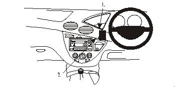 2. Das untere Ende des ProClip nach unten drücken, so dass das angewinkelte obere Ende des ProClip sich unter/hinter dem Rahmen um das Handschuhfach festhakt.