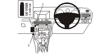 1. Das dünne Ende des beiliegenden "Gap Opener" zum Aufweiten in den Spalt zwischen dem Rahmen um die Armaturentafel und dem Armaturenbrett drücken. Die Schutzfolie vom Klebestreifen am ProClip entfernen.
