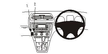 1. Die Schutzfolie vom Klebestreifen am ProClip entfernen. Die gedrehte Kante am linken Ende des ProClip in den Spalt zwischen dem Rahmen um der Armaturentafel und dem Armaturenbrett drücken.