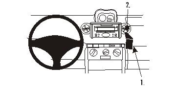 1. Die Schutzfolie vom Klebestreifen am ProClip entfernen. Die gedrehte Kante am unteren Ende des ProClip in den Spalt im Armaturenbrett drücken, neben dem Handschuhfach.