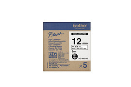 HG-Multipack, Inhalt: 5 Schriftbänder pro Packung; laminiert, schwarz auf silber matt, 12 mm Breite, 8 m Länge, bis zu 80 mm/Sekunde Druckgeschwindigkeit (bei Verwendung des PT-9700PC/PT9800PCN) oder 720 dpi Druckauflösung